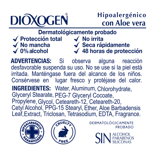 Dioxogen Desodorante Antitranspirante Roll On Aloe Vera 90g