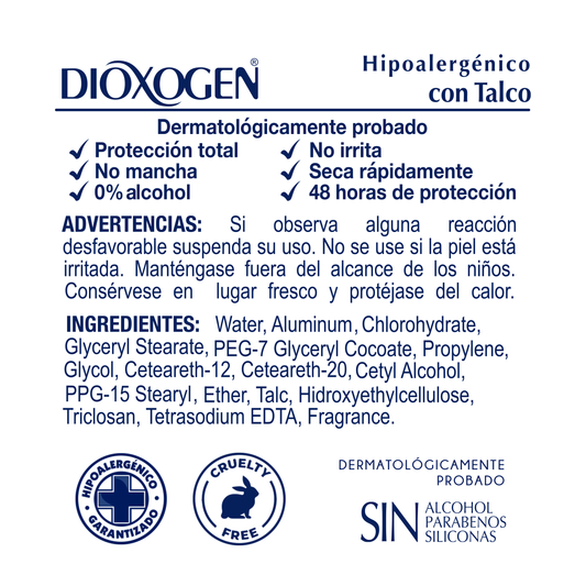 Dioxogen Desodorante Antitranspirante Roll On Talco 90g